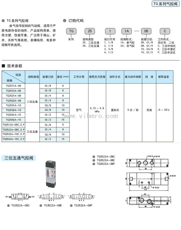 TG3522A-08C,STNC电磁阀,TG系列气控阀