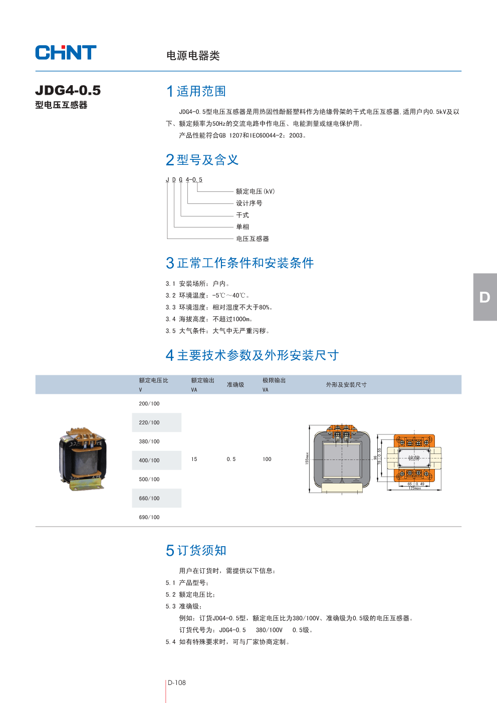 JDG4-0.5型电压互感器,正泰集团CHINT国内一级代理