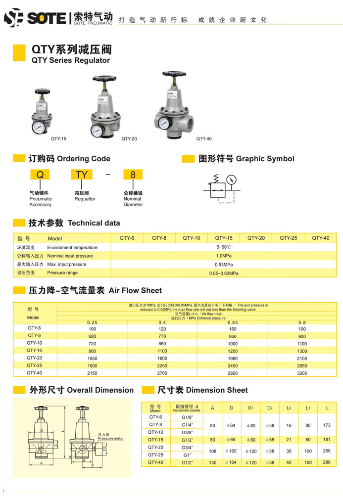 产品标题:QTY-6|QTY-8|QTY-10|QTY-15|QTY-20|QTY-25|QTY-40|SOTE索特减压阀|QTY系列减压阀